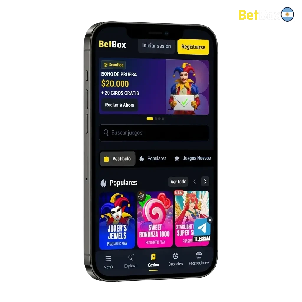 La aplicación Betbox ofrece soporte en varios idiomas y podés descargar el APK legalmente en Argentina. Todas las funciones populares de apuestas y casino están disponibles, incluyendo métodos como Lemon, Mercado Pago, transferencia bancaria y Crypto. Aprovechá el bono de bienvenida: En tus primeros 4 depósitos $2.500.000 + 75 GIROS GRATIS!. Conseguí hasta un 100% de bonificación con un pago mínimo de $5.000.
