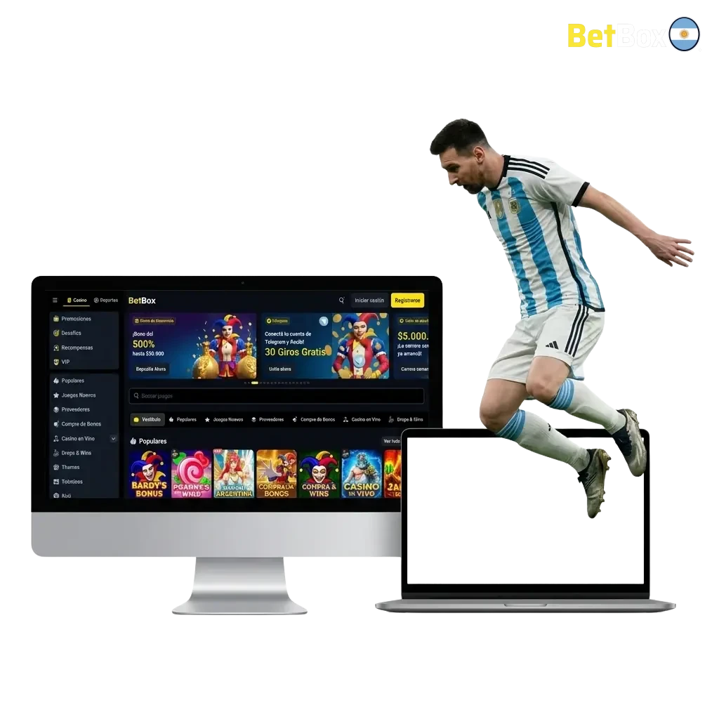 Ingresá al destino de confianza para tus jugadas desde 2018. Betbox Argentina opera bajo una licencia oficial de Curazao para garantizar tu seguridad en cada paso. Disfrutá de las mejores apuestas deportivas en vivo, ciberdeportes, casino en vivo y cientos de juegos de casino. Llevá la acción a todas partes gracias a la aplicación móvil disponible para Android e iOS. Al registrarte en el sitio web oficial de Betbox, multiplicás tus oportunidades de ganar. ¡En tus primeros 4 depósitos recibís $2.500.000 + 75 GIROS GRATIS! Empezá tu experiencia de usuario hoy mismo.